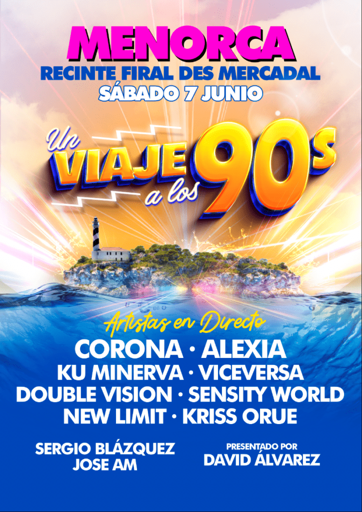 Un Viaje a los 90 despega hacia Menorca con un cartel de lujo que incluye a artistas internacionales como Corona y Alexia, reuniendo a los mejores exponentes de la década dorada.